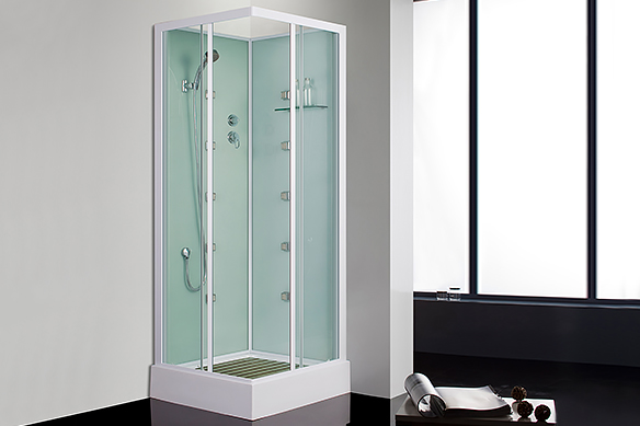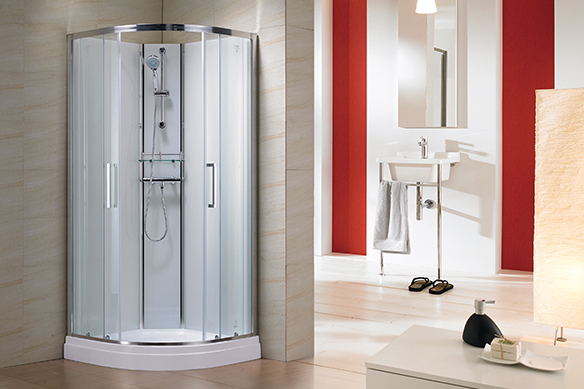 A complete shower space consisting of four-sided glass, available in a variety of styles (sliding doors, piv